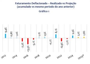 O índice também indica que, em março, o faturamento total deflacionado dos materiais de construção registrou aumento de 2,2% em relação ao mesmo mês de 2024. Na comparação com ajuste sazonal com fevereiro, houve contração de 2,5%.